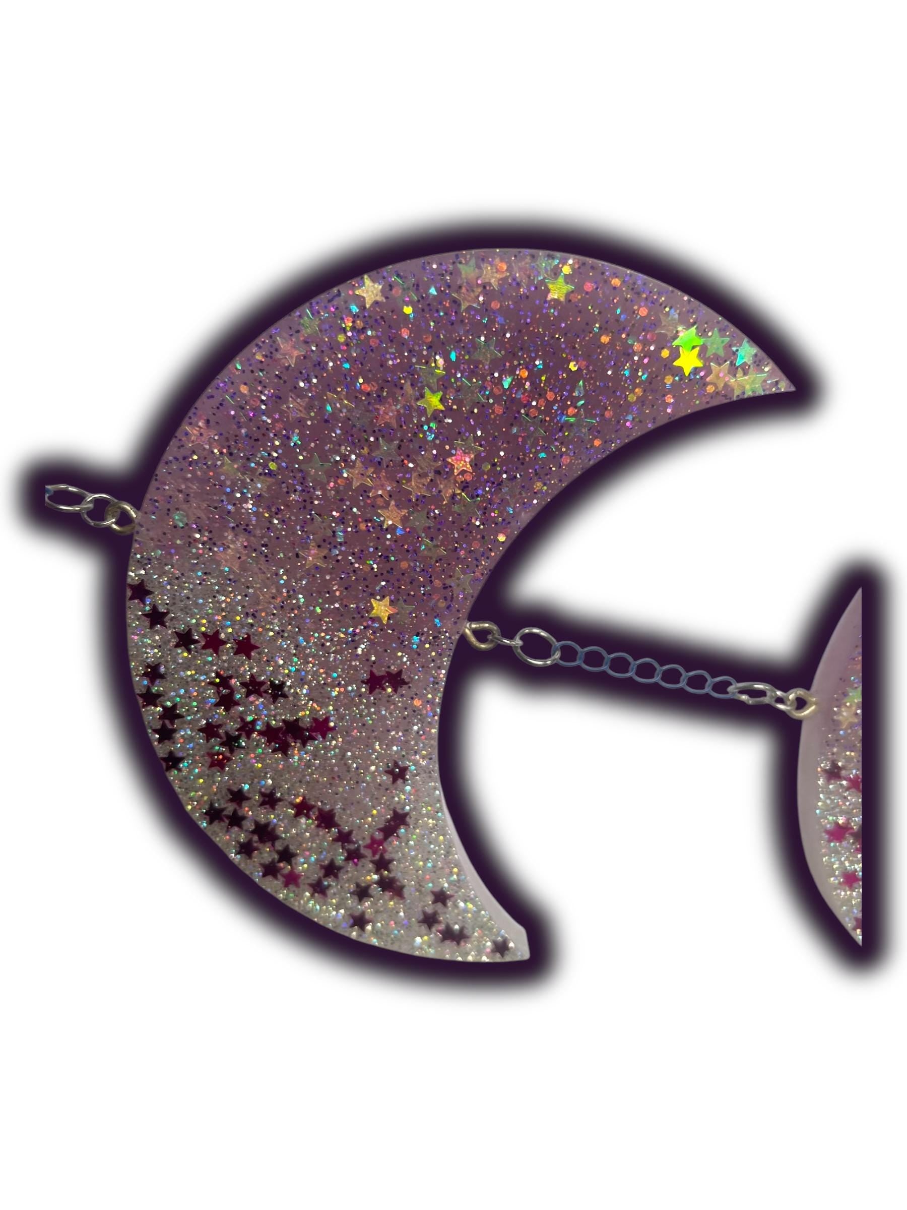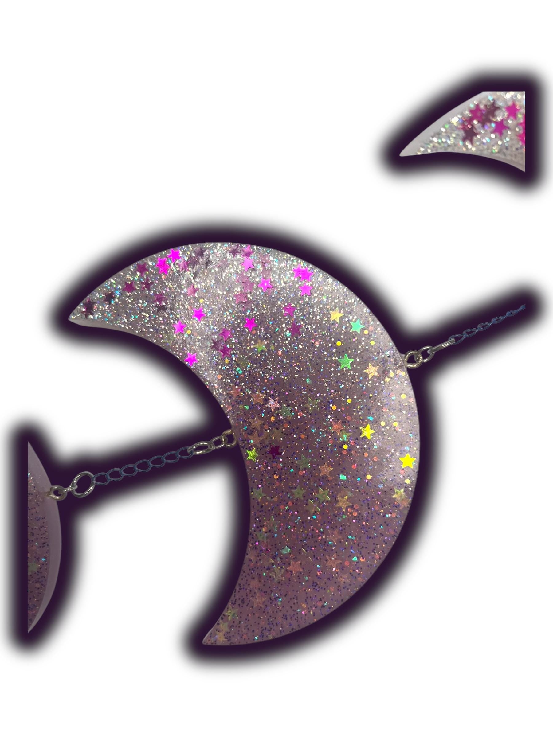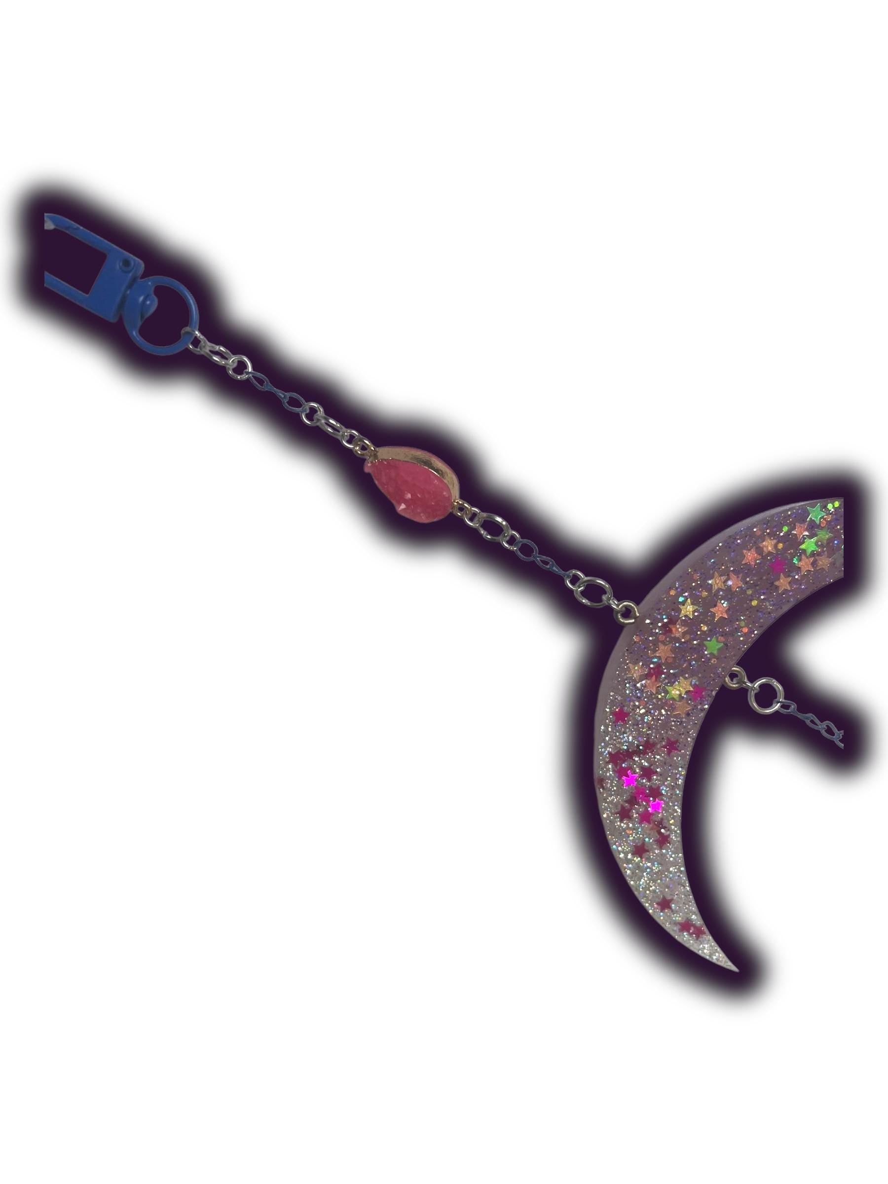 β’ Materials & Finish: Blue clip, dark blue chain, silver hardware, galaxy cabochon