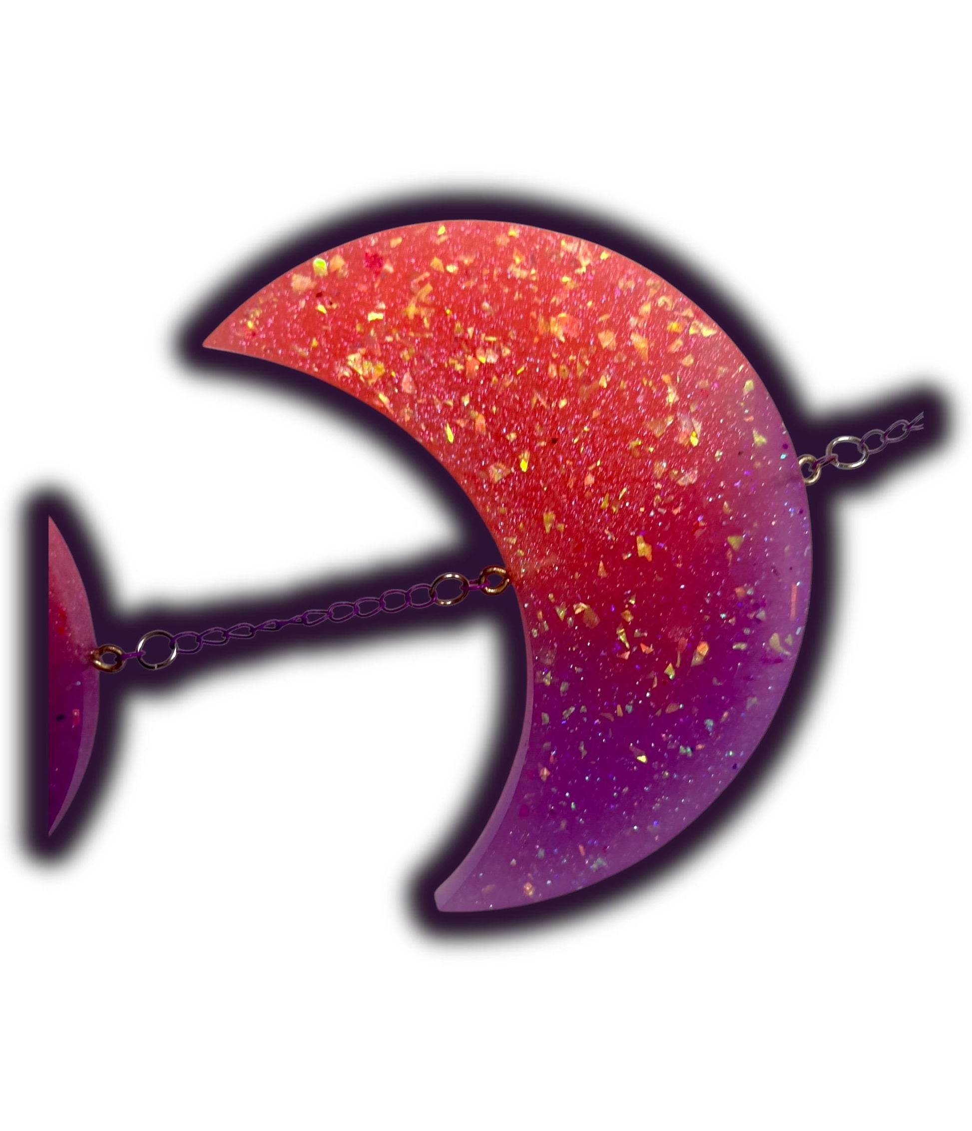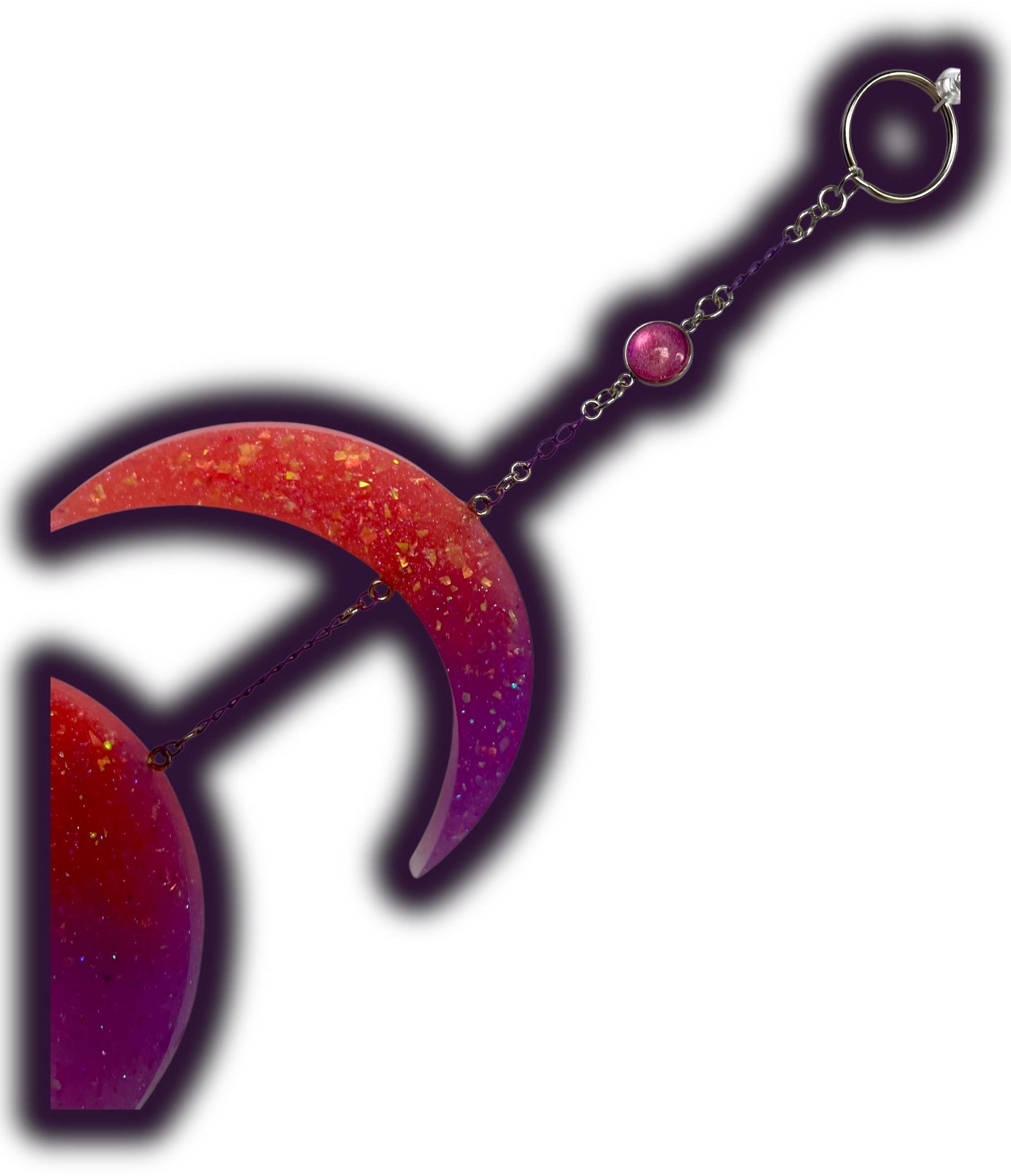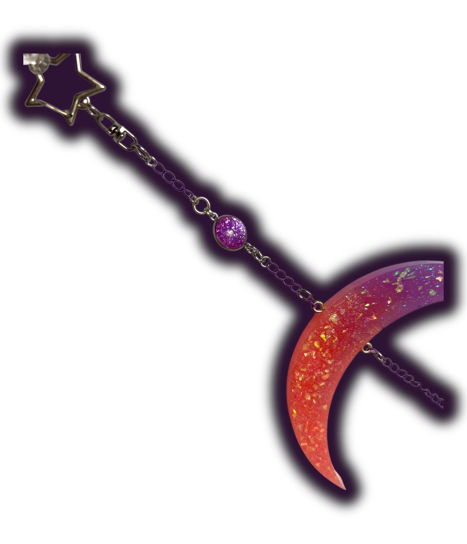 • Materials & Finish: Silver star clip, purple chain, silver & purple jump rings, cabochons