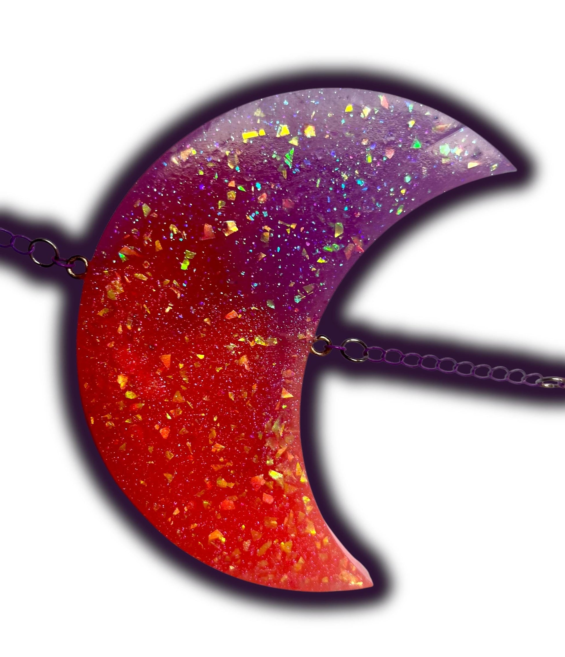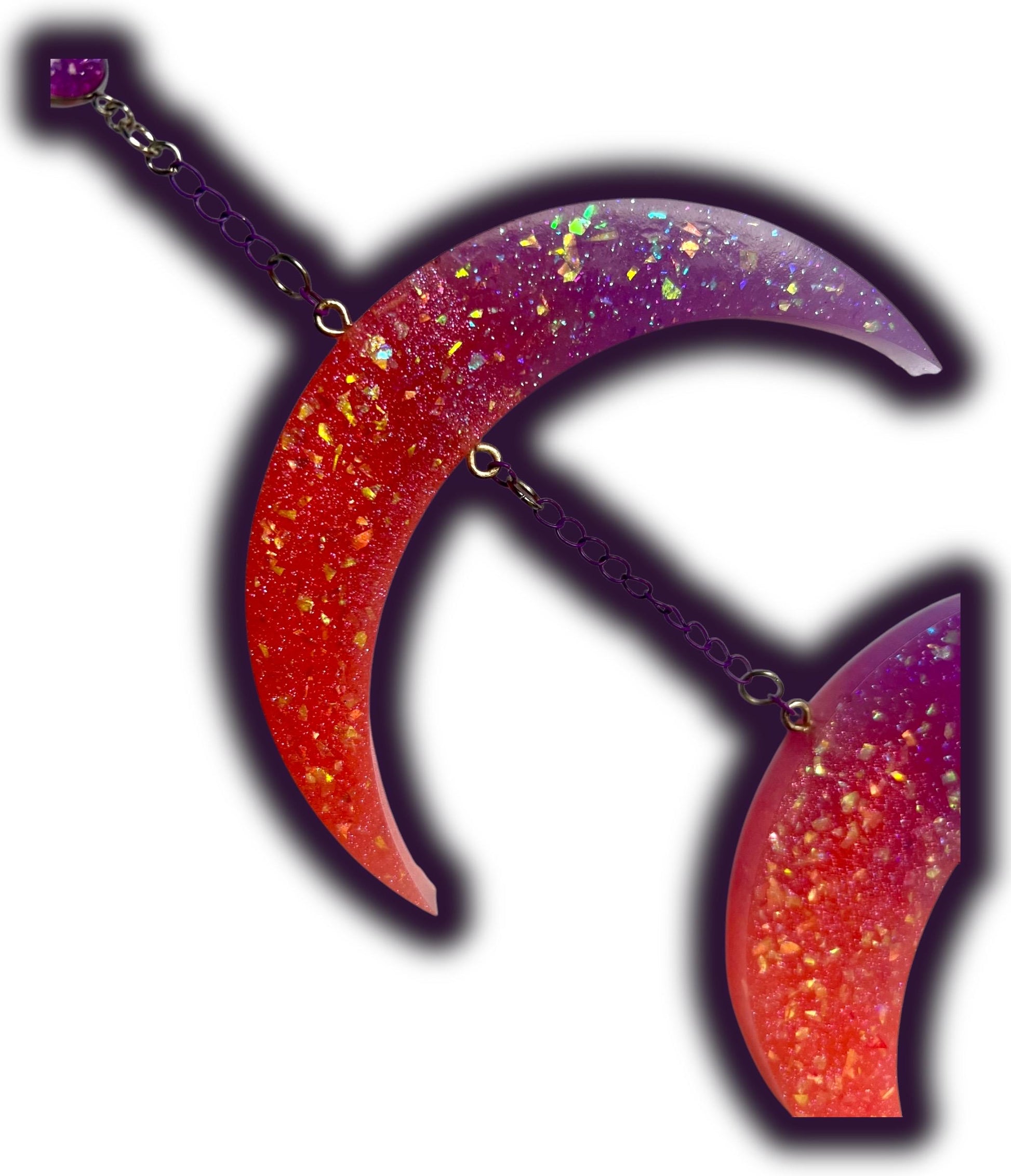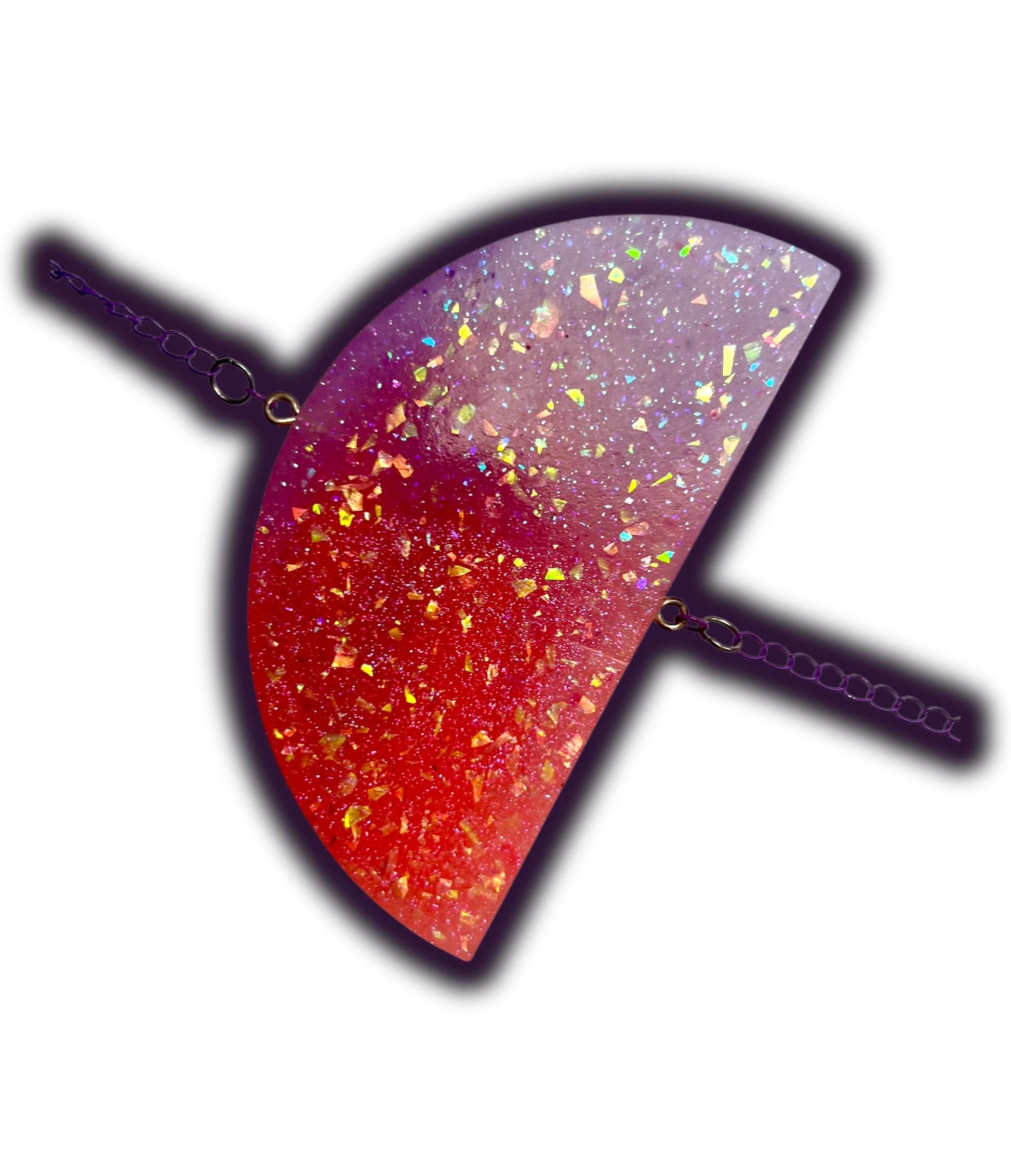 • Materials & Finish: Silver star clip, purple chain, silver & purple jump rings, cabochons