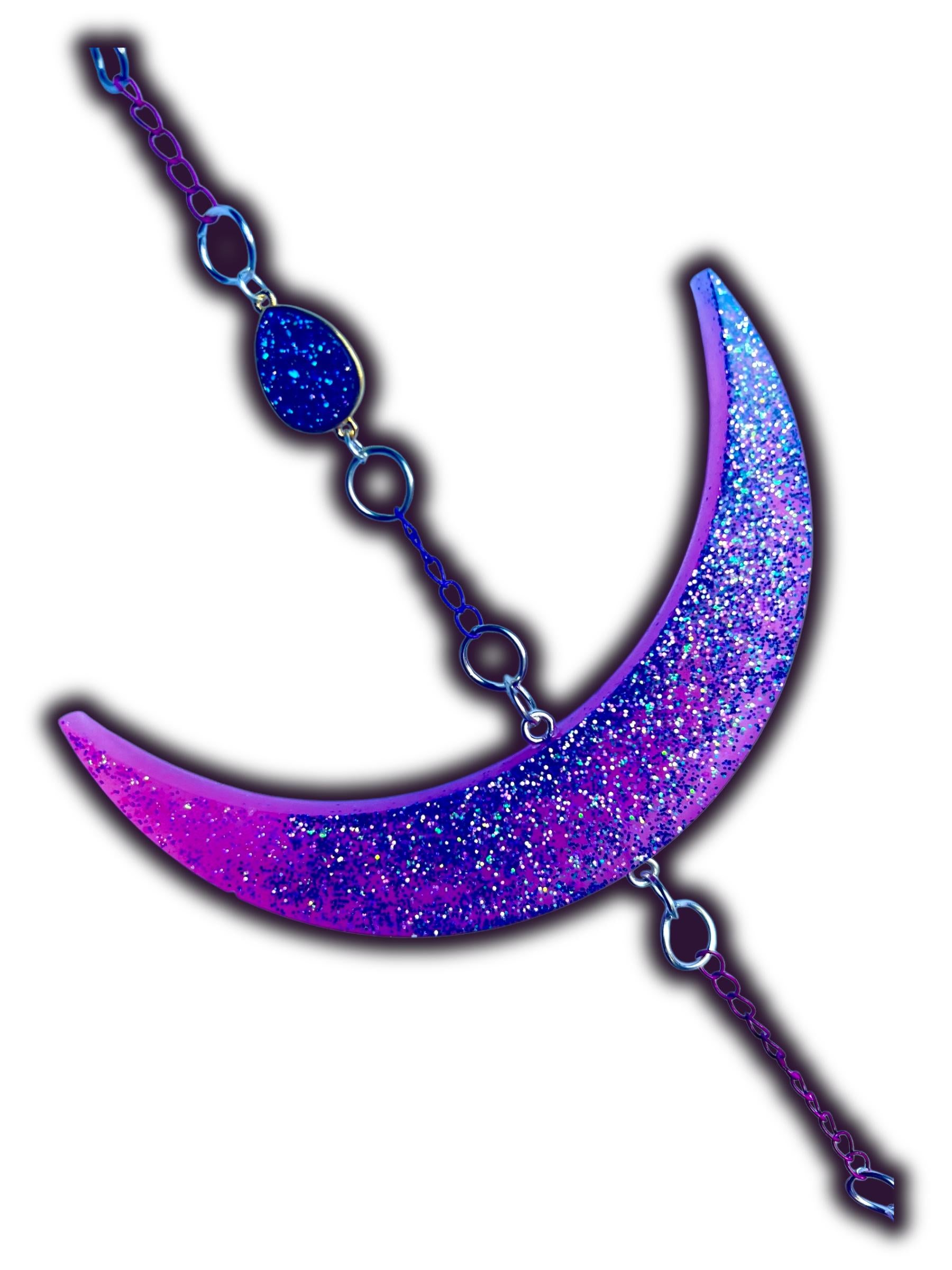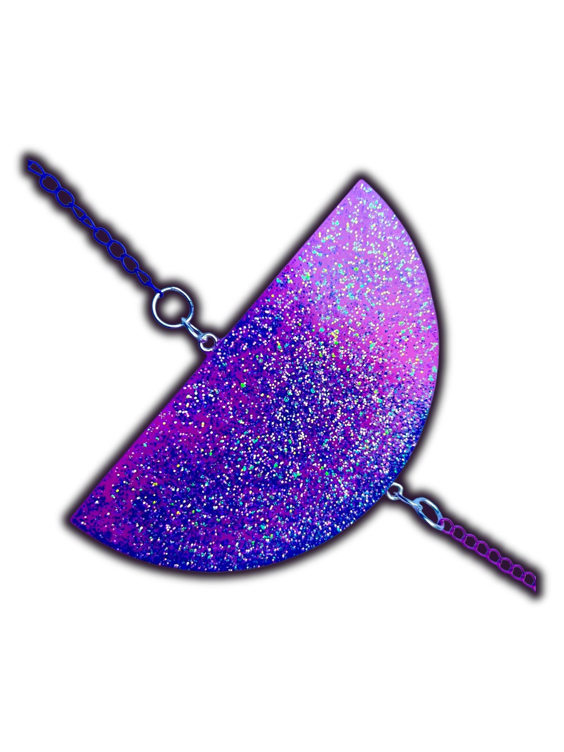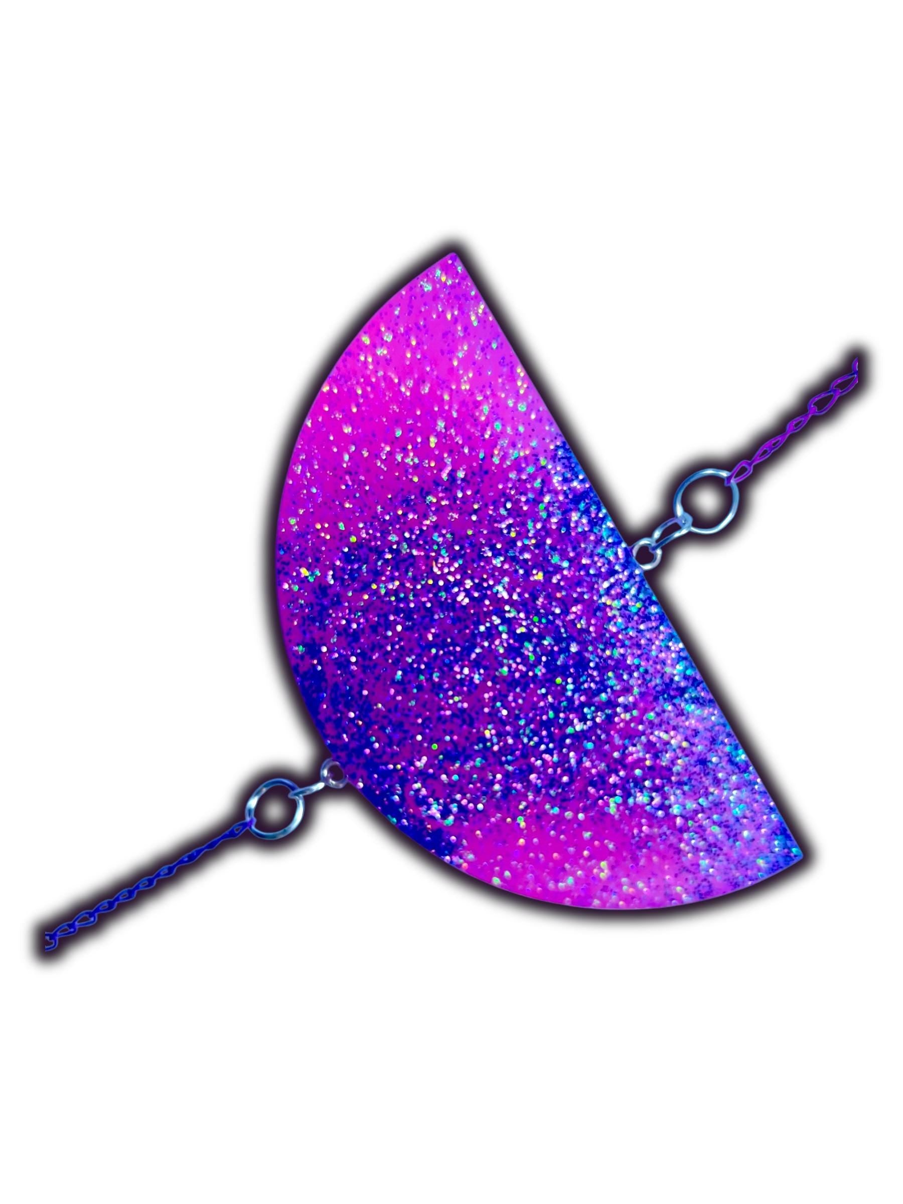 It’s giving cotton candy nebula. Dusty purple glitter, pretty pink charm energy, and that triple-star connector bringing cosmic alignment. She glows like she means it—and she does.