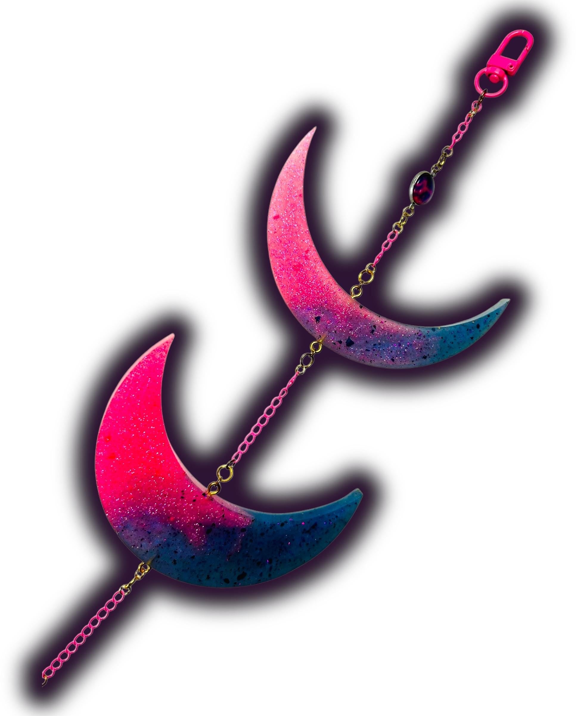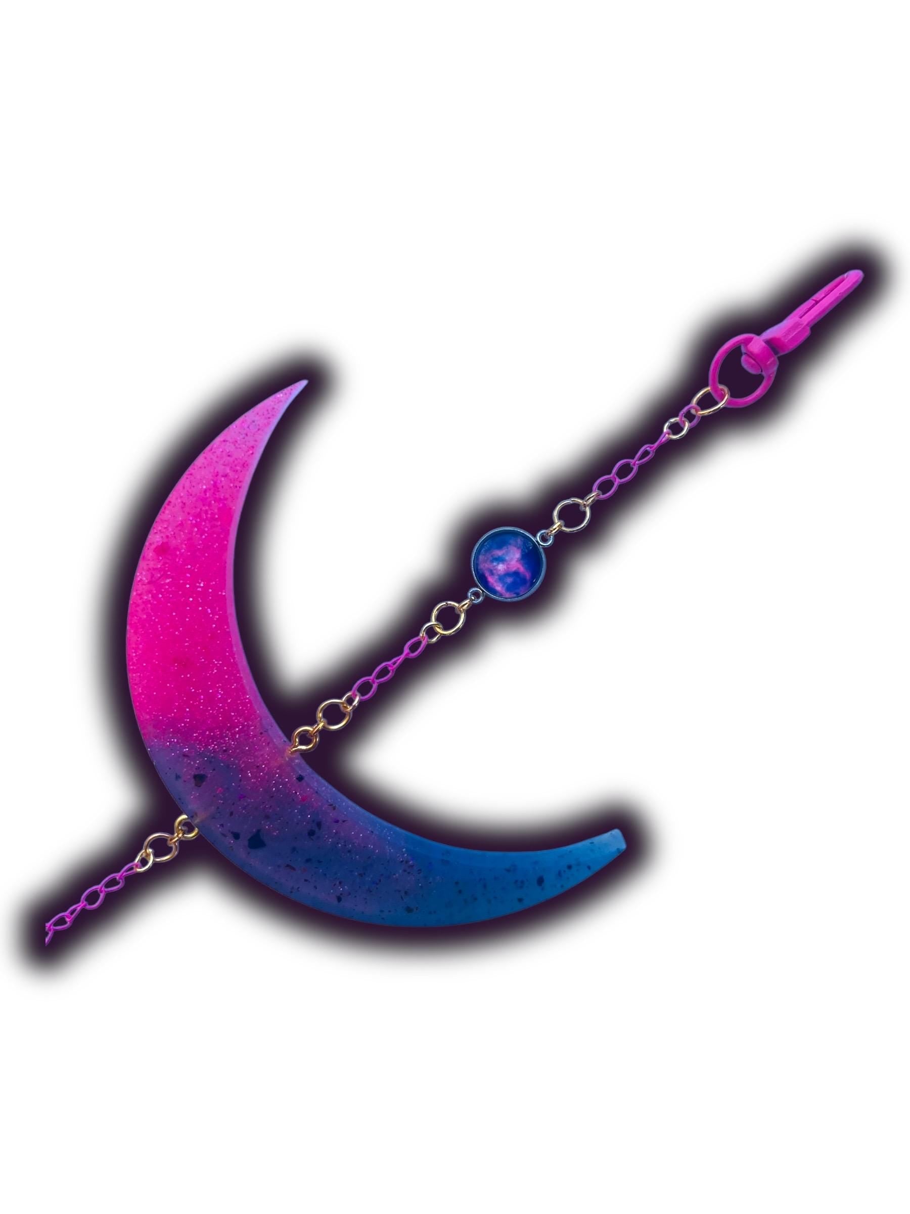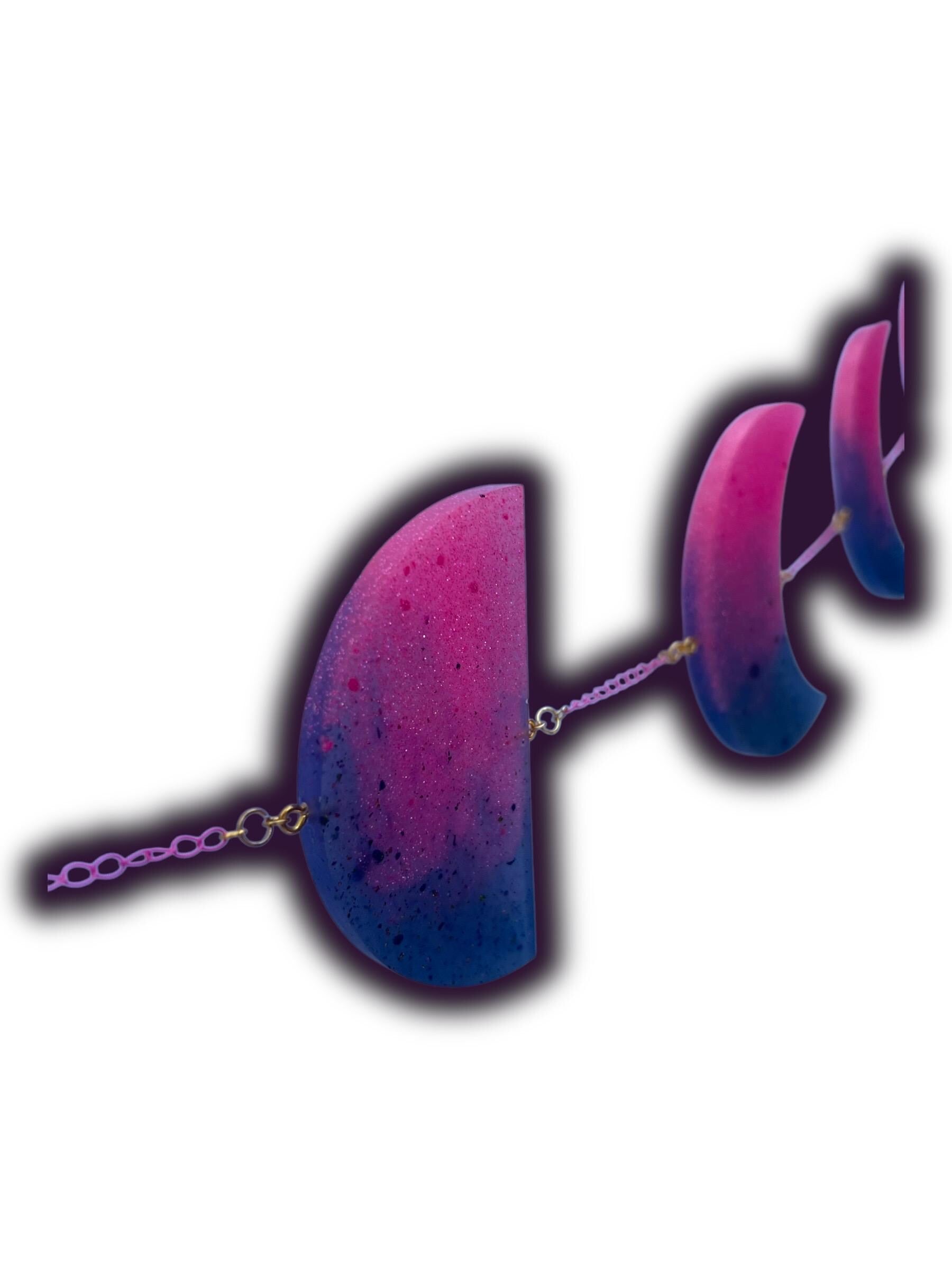 • Materials & Finish: Light pink chain + clips, gold accents, pink & blue galaxy cabochon