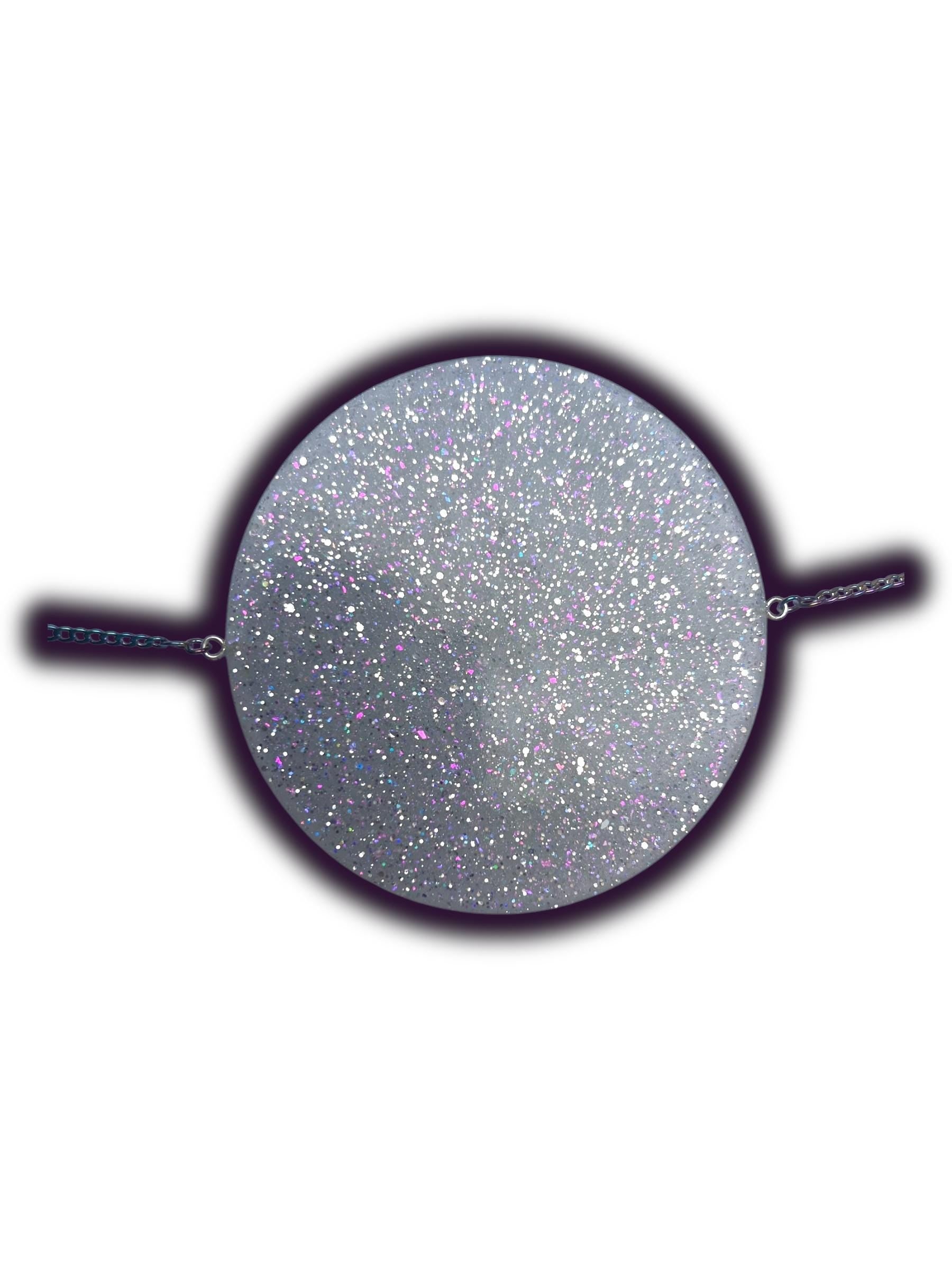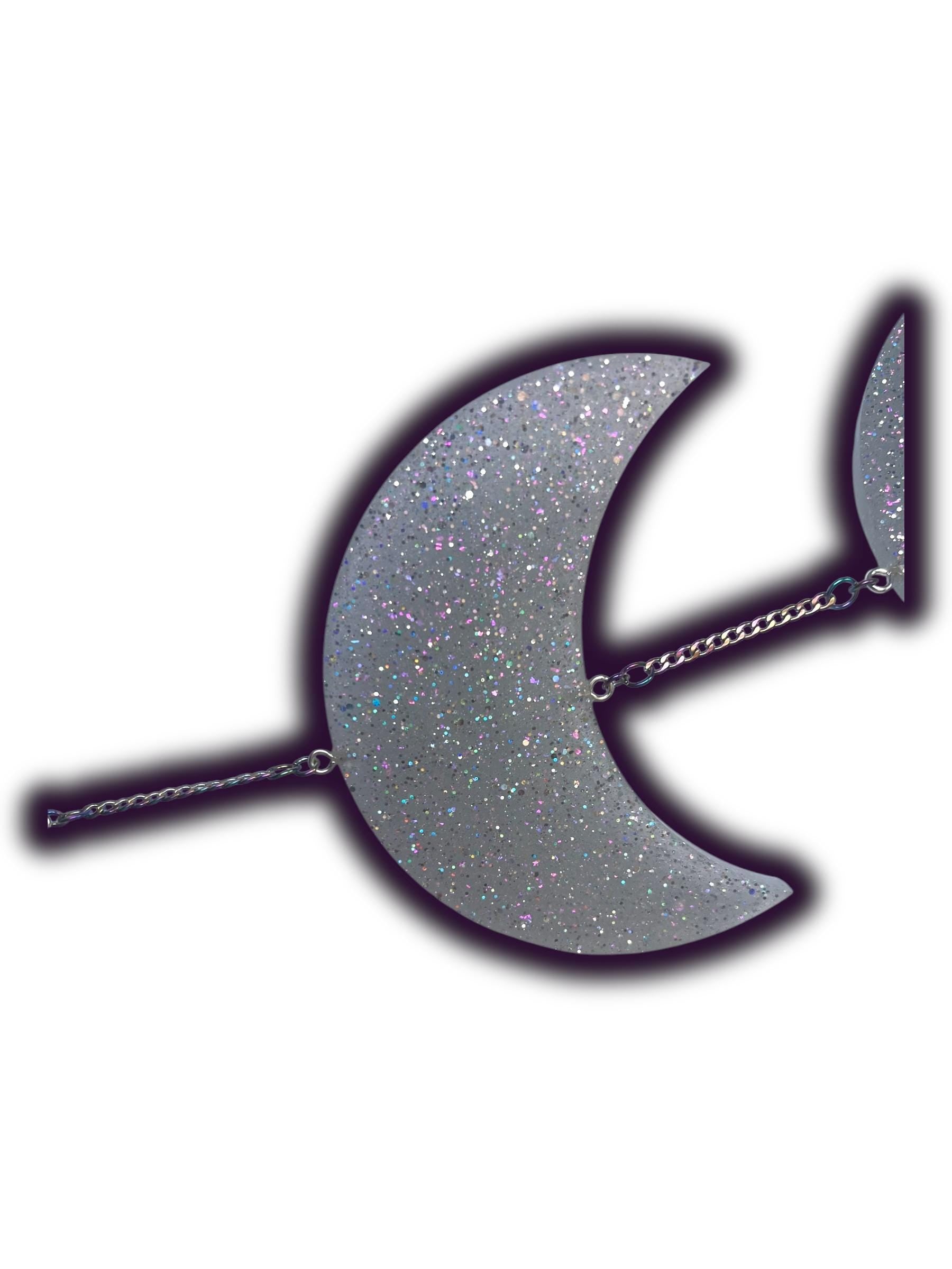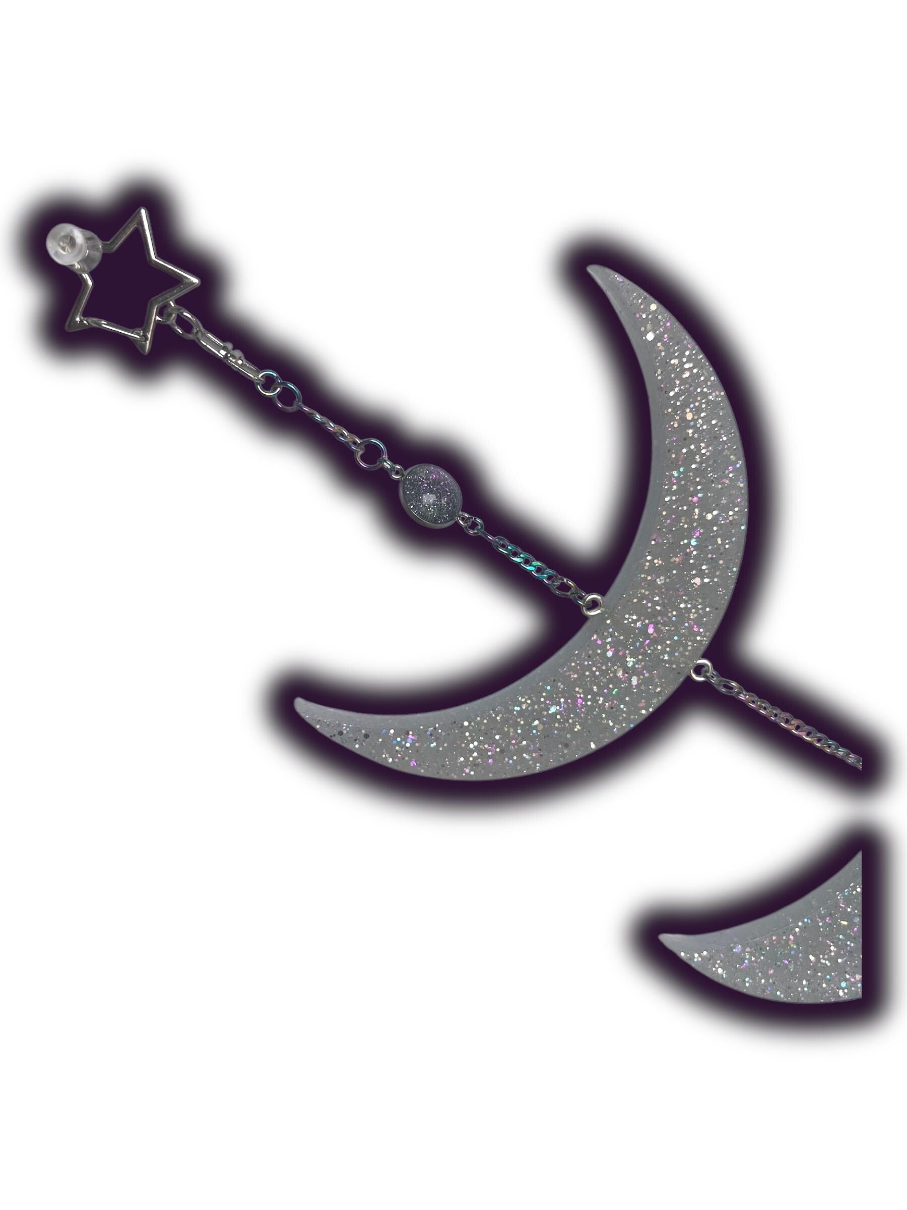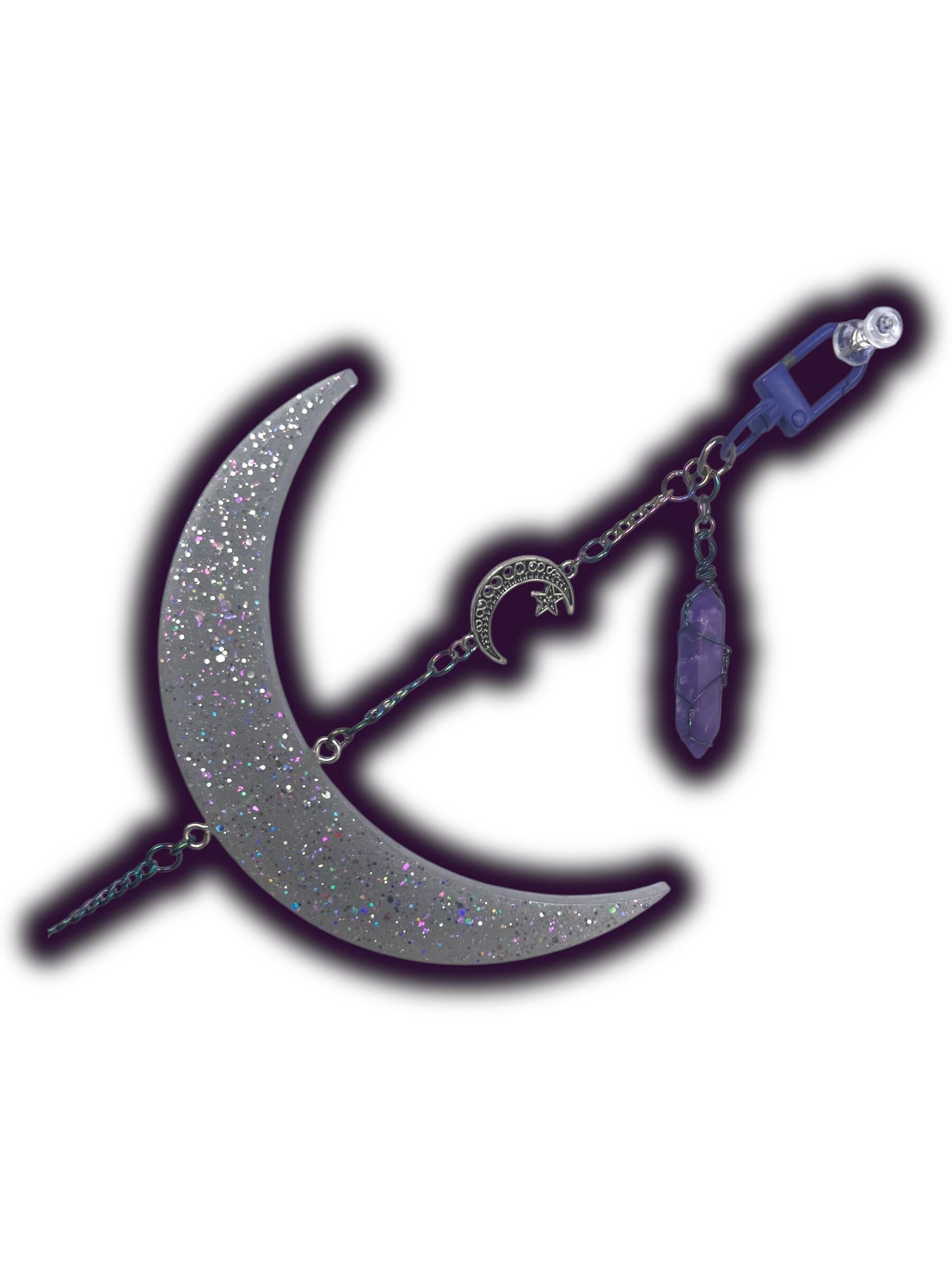 • Materials & Finish: Rainbow chain, purple clip, platinum star clip & hook eyes, glitter cabochon