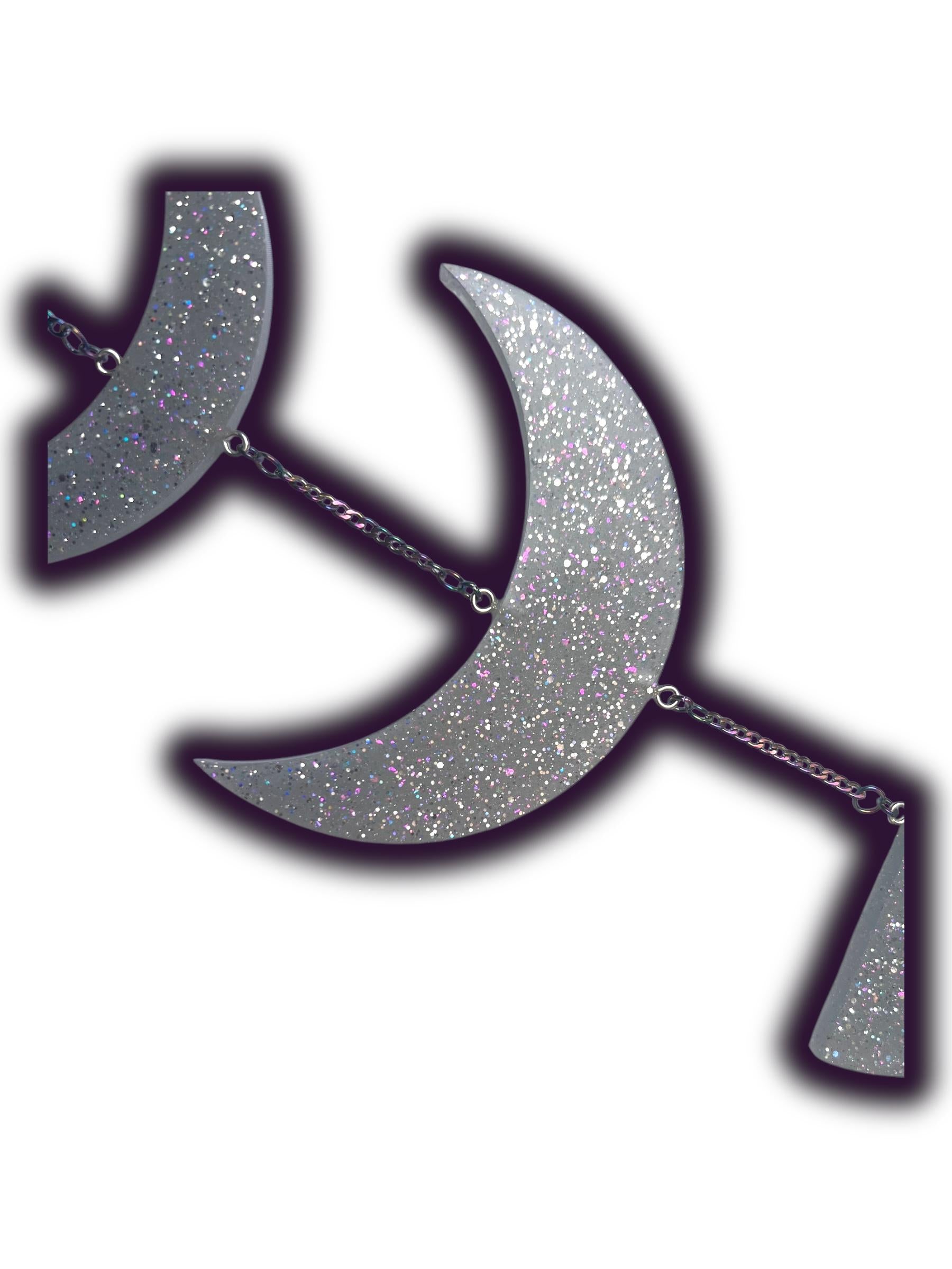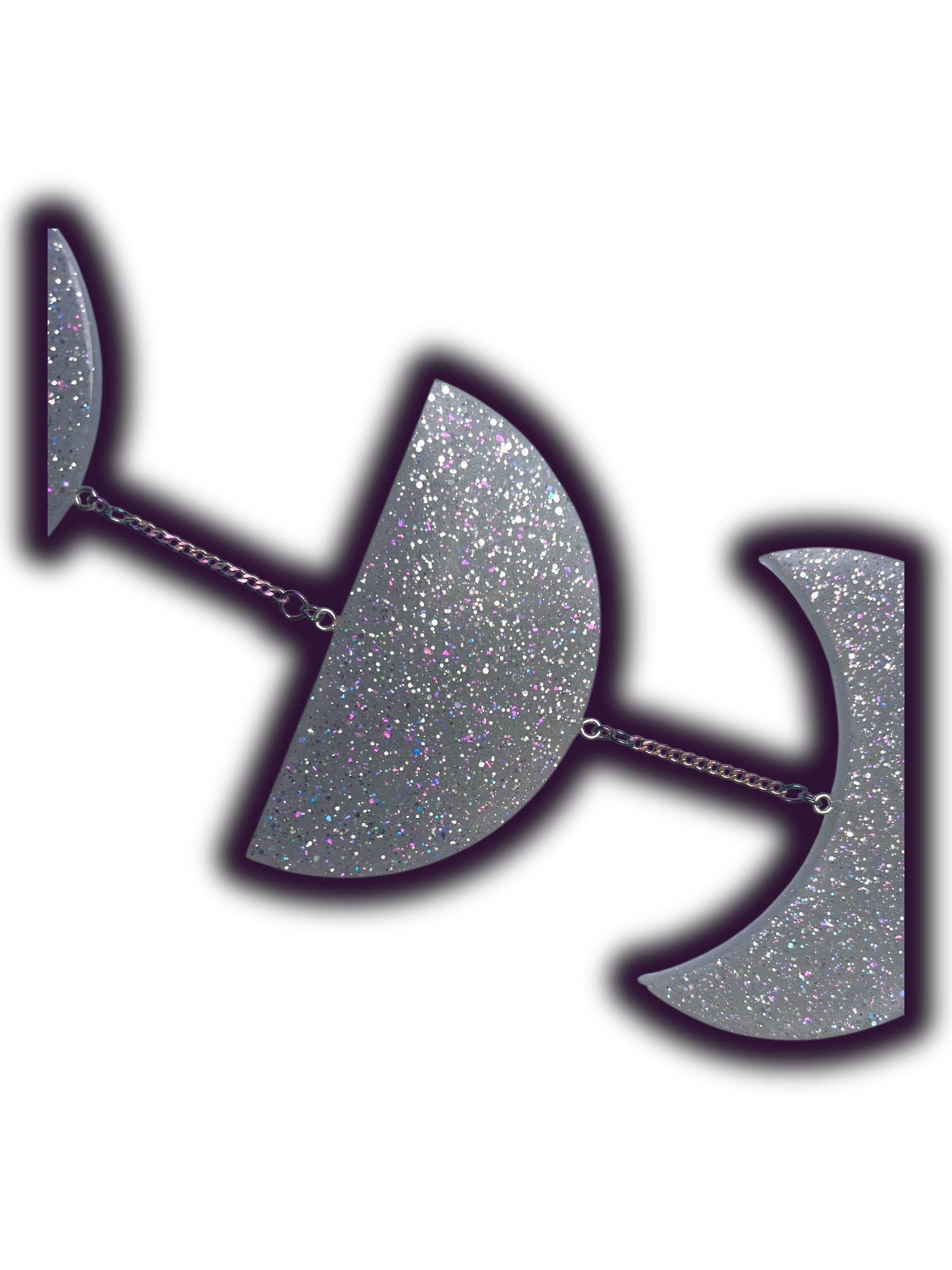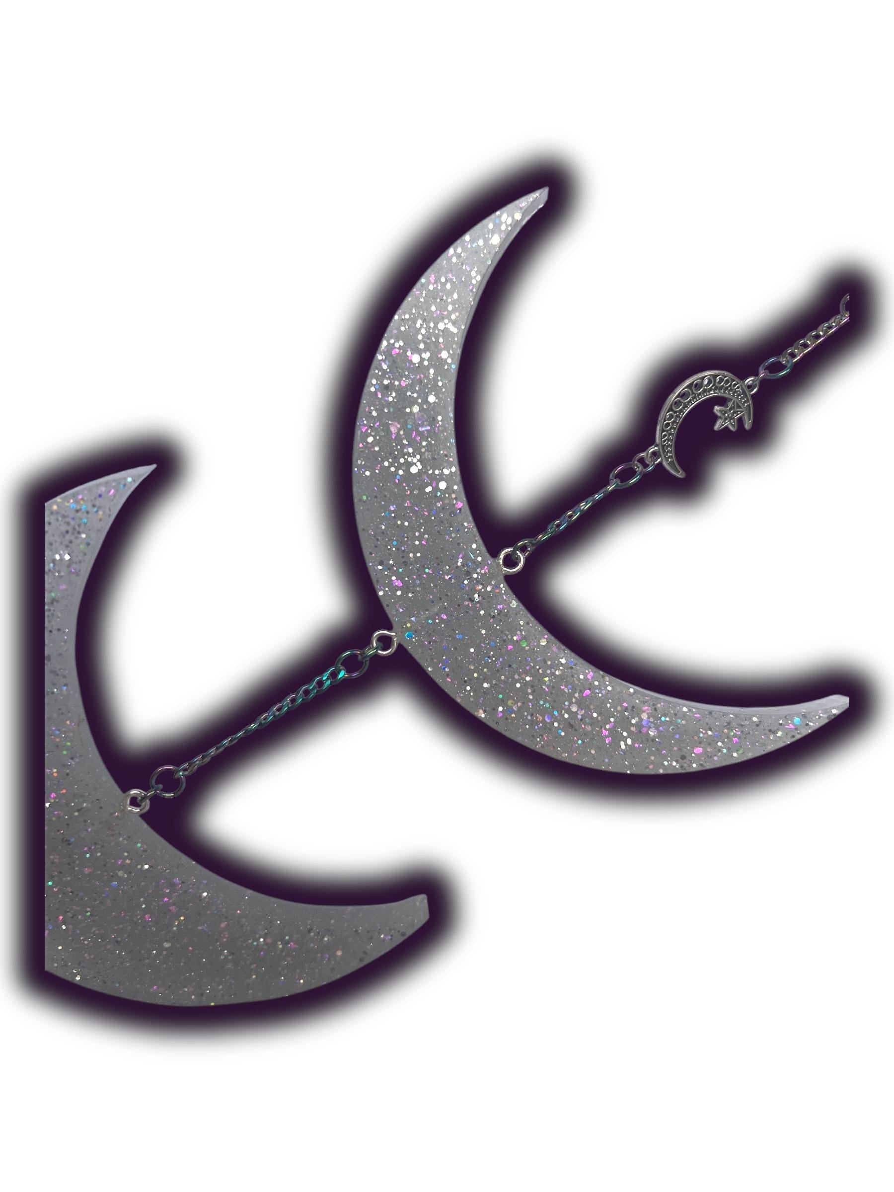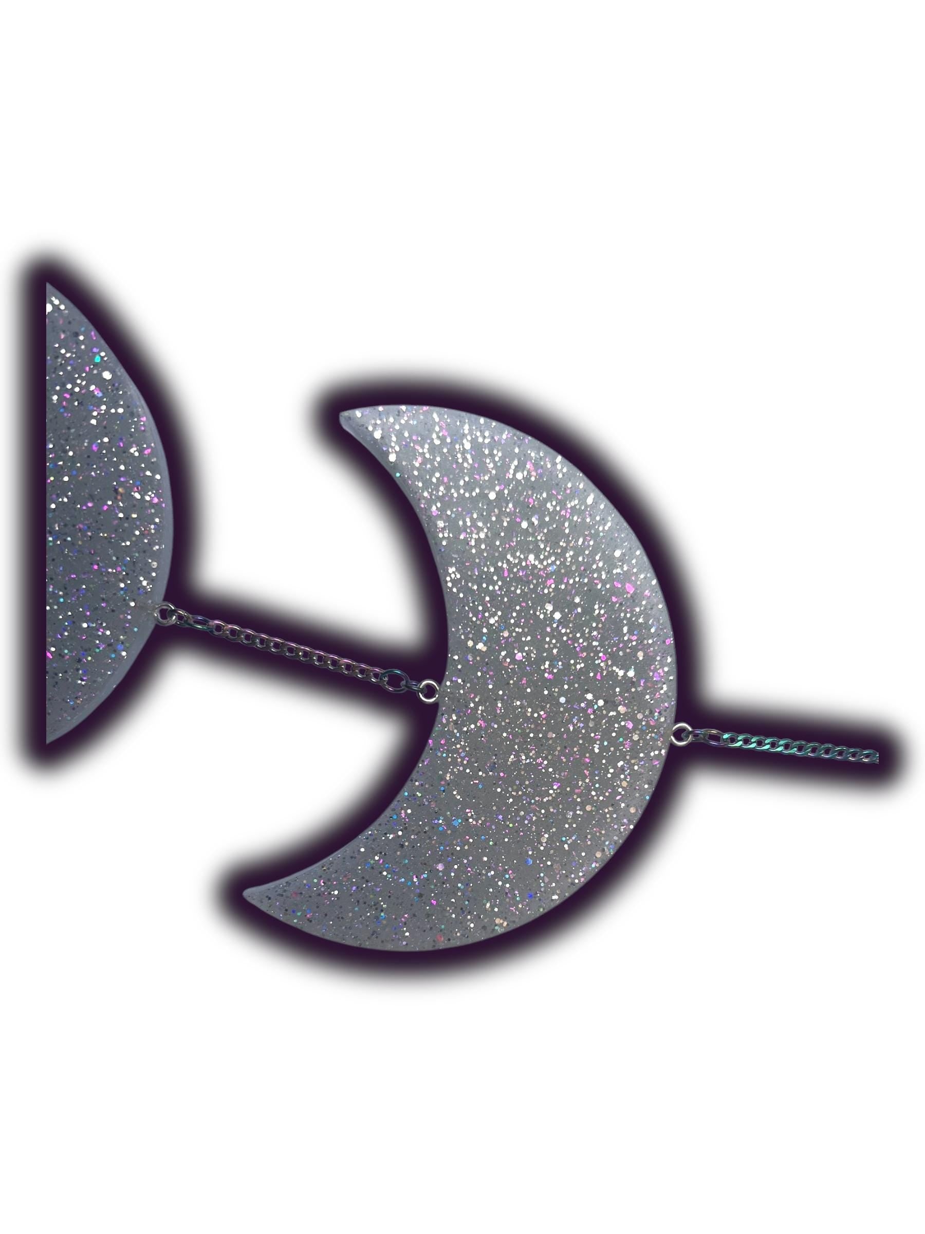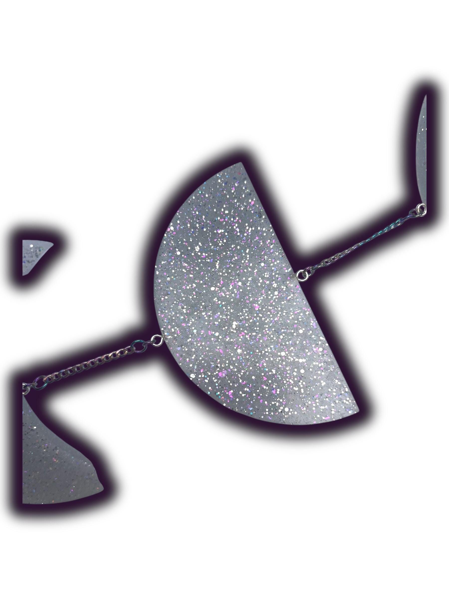 • Materials & Finish: Rainbow chain, purple clip, platinum star clip & hook eyes, glitter cabochon
