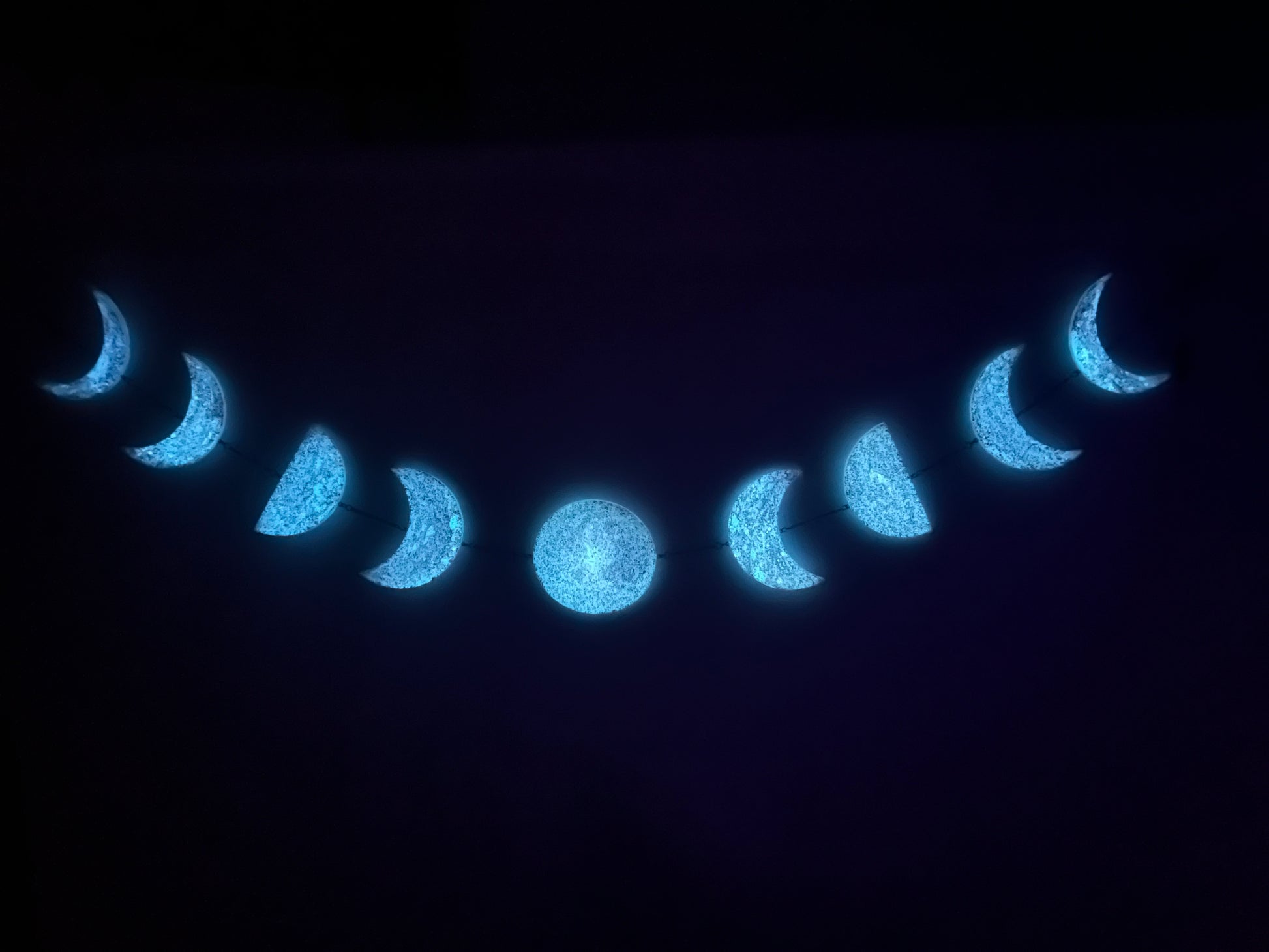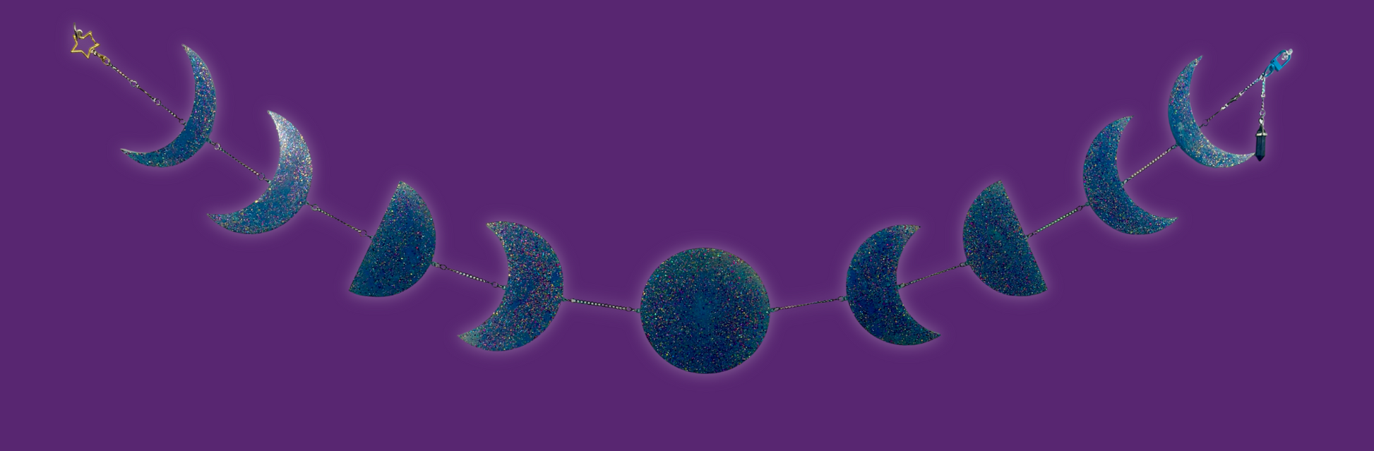 Moon Phase Wall Hanging, Phases of the Moon Decor, Witchy Things, Spiritual Stuff, Galaxy Inspired, Glow-in-the-Dark, Wire Wrapped Crystal