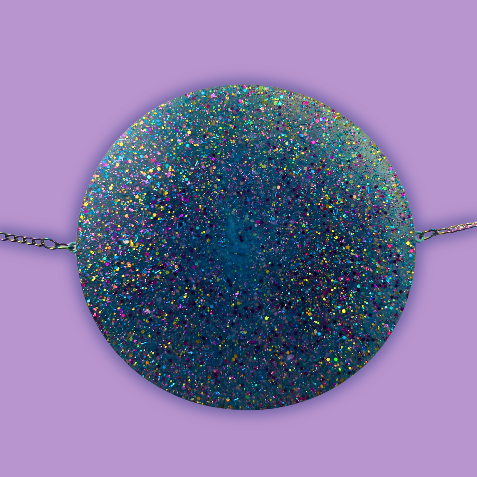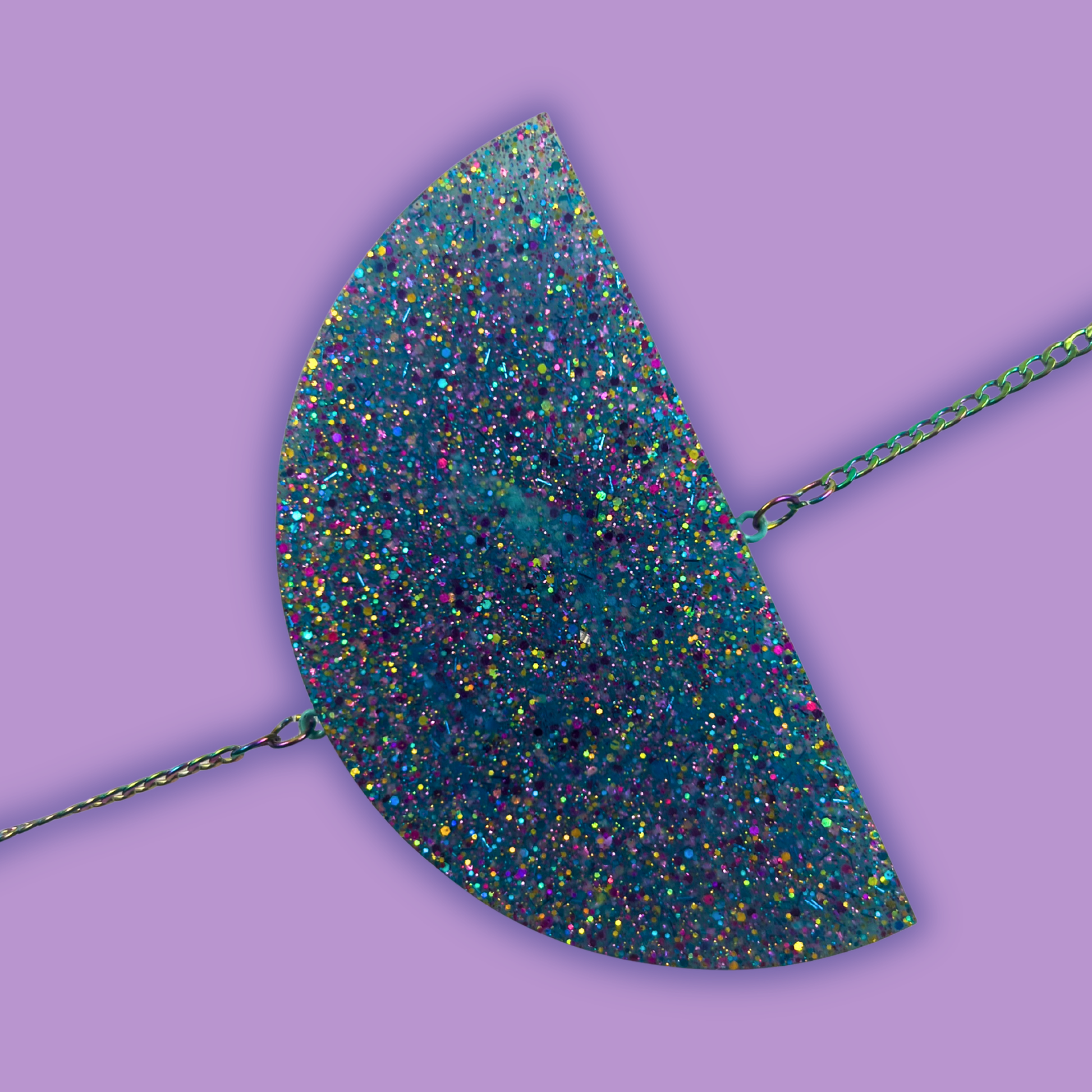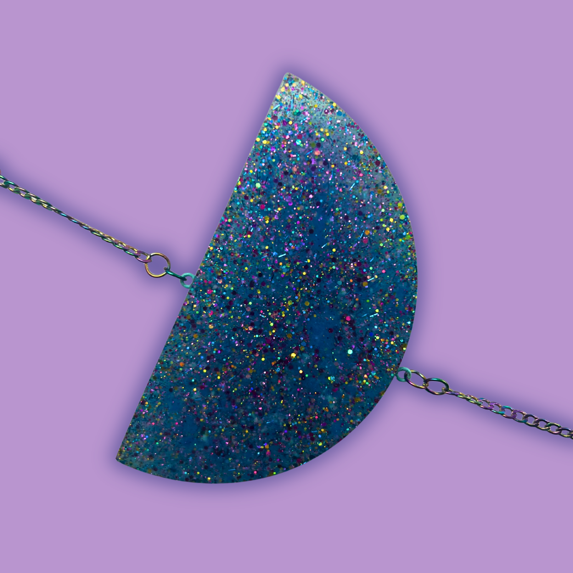 This one? She’s got that parade-in-the-cosmos energy. Blue base glistening like a star-drenched bayou, loaded with chunky Mardi Gras sparkle that doesn’t quit. Finished with a lapis lazuli pointer to remind you who tf you are, even on off days. She glows. She guides. She demands attention.