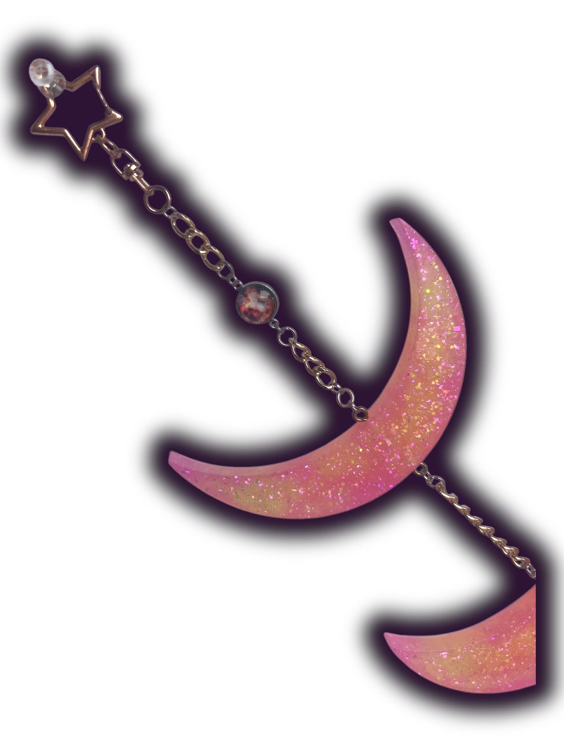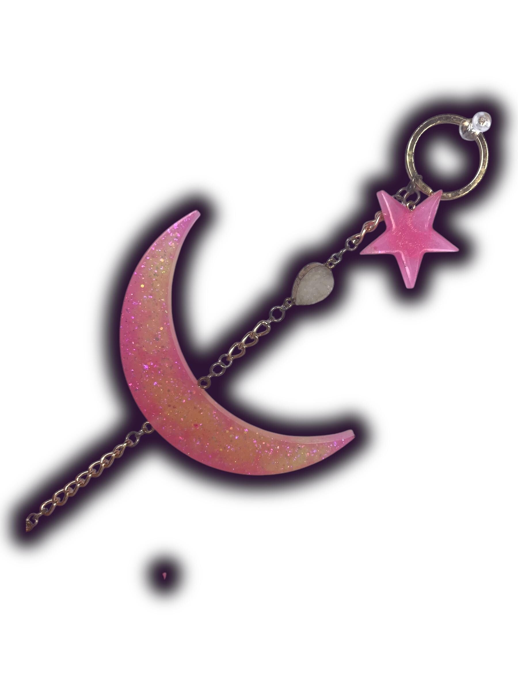 • Materials & Finish: Gold chain, rose gold star clip, pink resin star, fake druzy pendant, galaxy cabochon