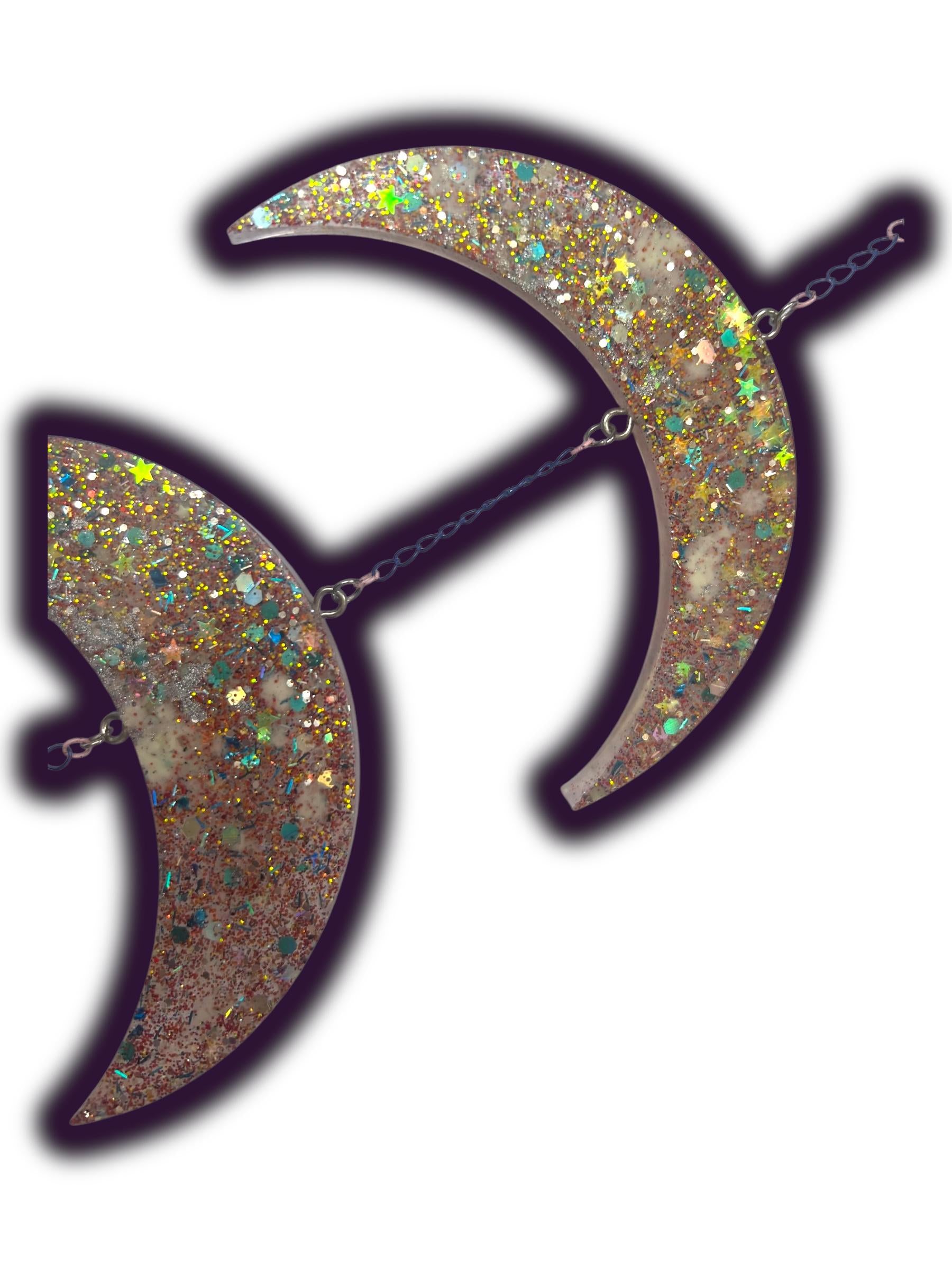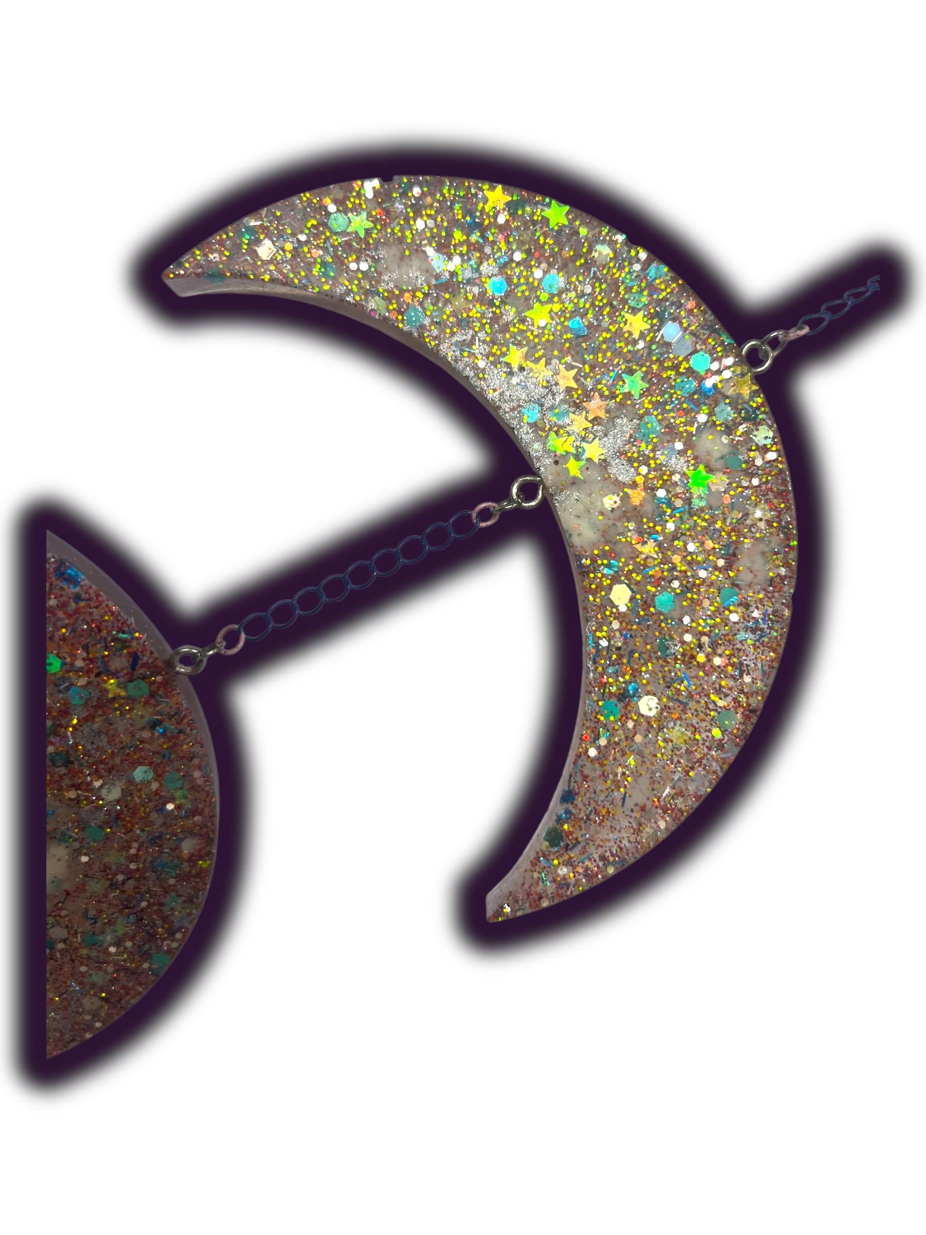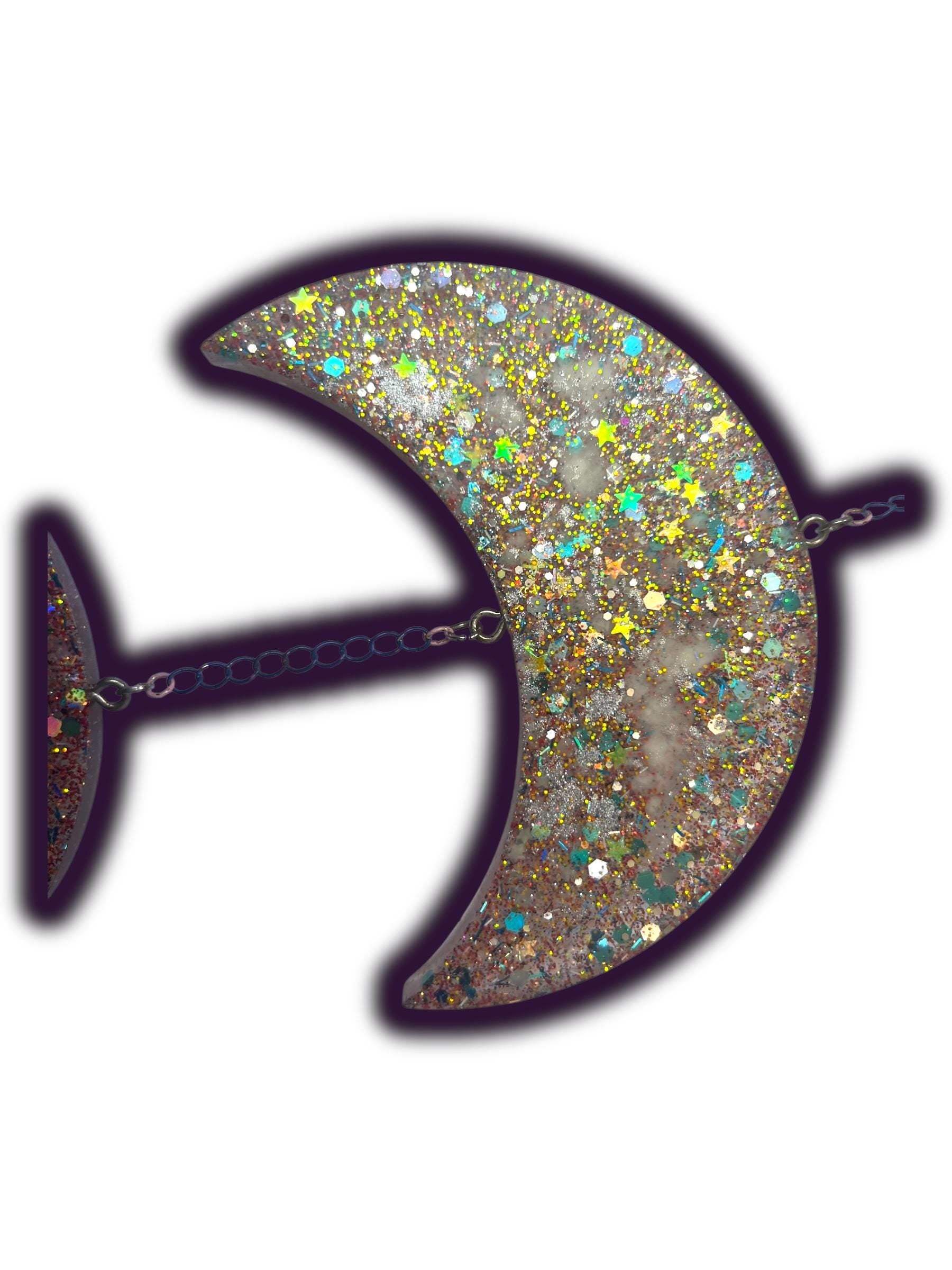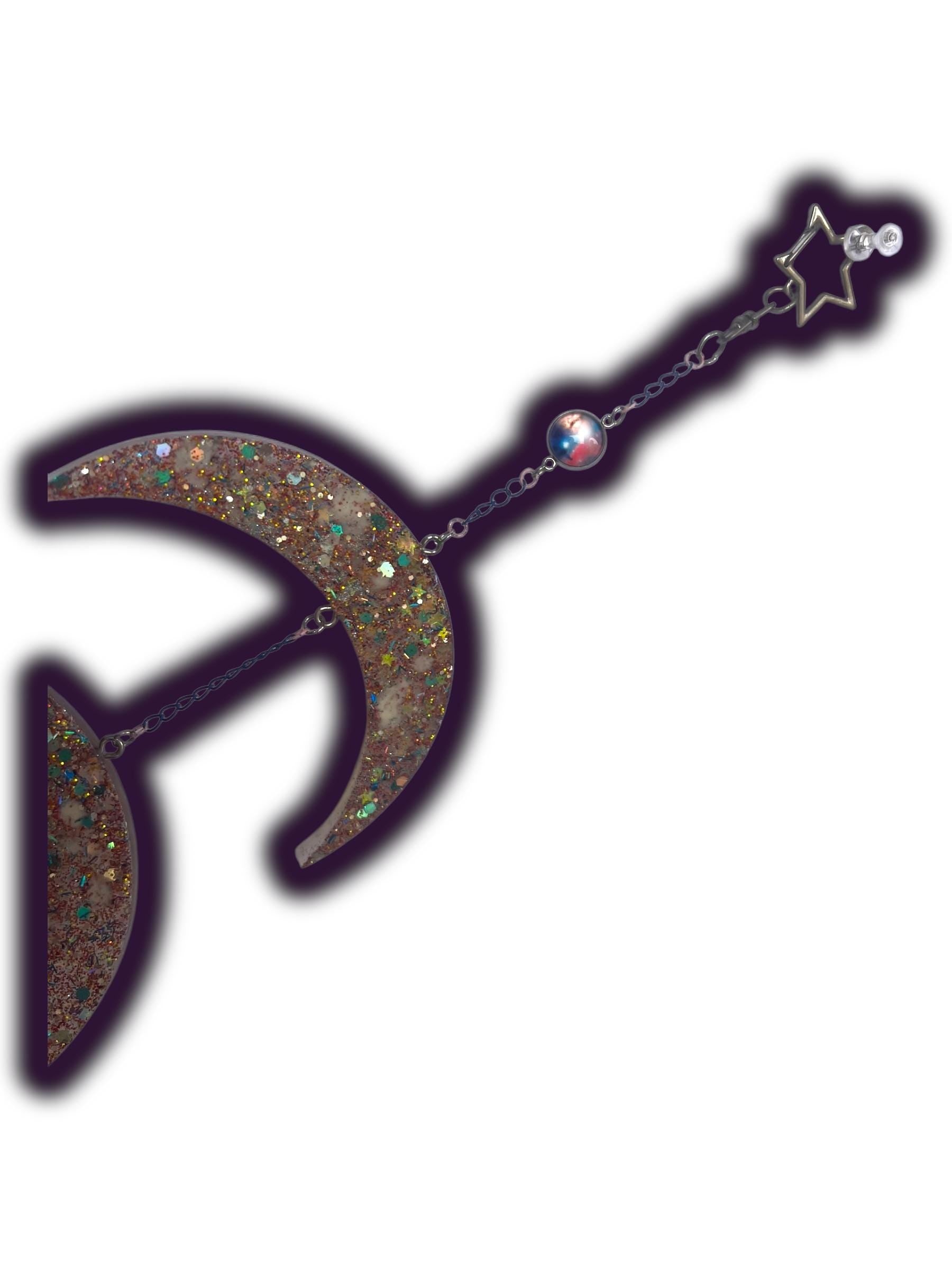 • Materials & Finish: Blue chain, pink & silver jump rings, silver hardware, galaxy cabochons x2