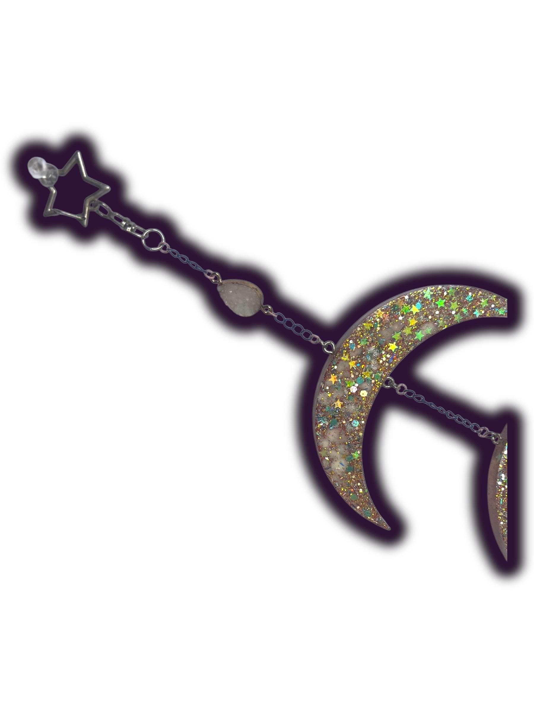 Moon Phase Wall Hanging, Phases of the Moon Decor, Witchy Things, Spiritual Stuff, Galaxy Inspired, Glow-in-the-Dark, Wire Wrapped Crystal